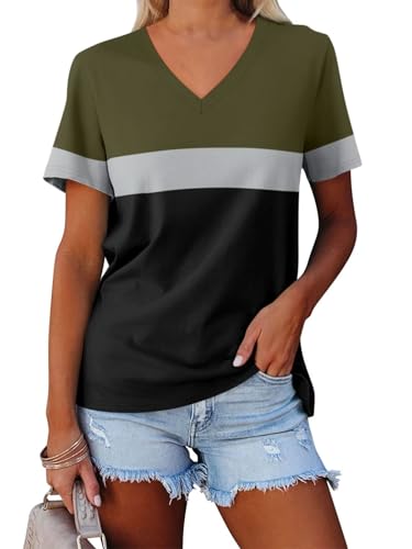 Minetom Women's Trendy Summer V-Neck Tees – Color Block & Solid